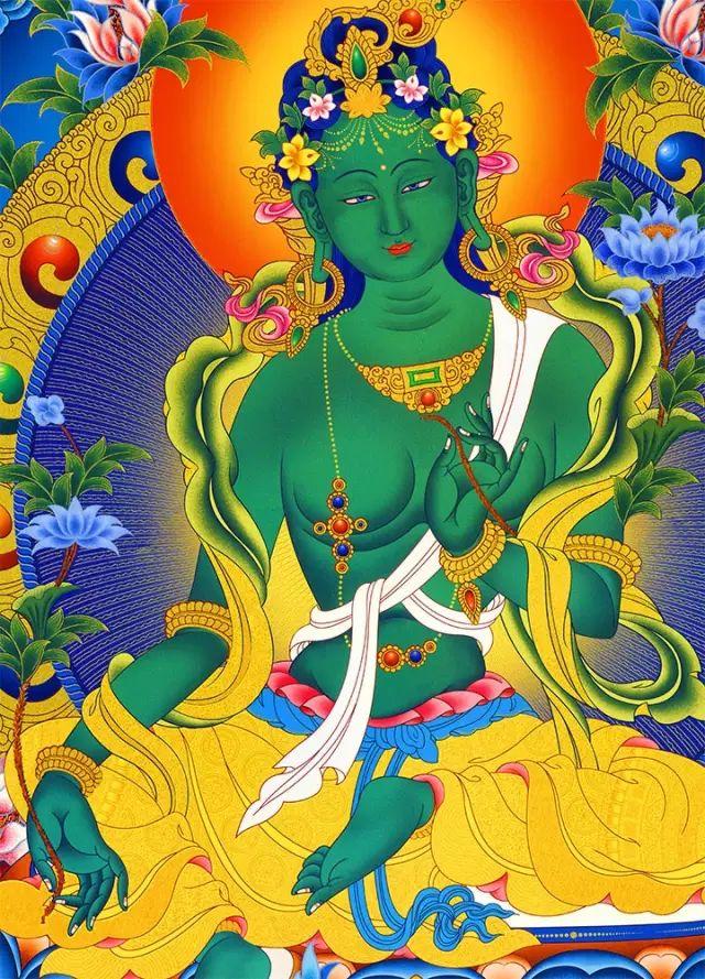 但上師不怕,大發慈悲心,偏往虎窩行,進入此區,口中念誦度母咒語加持手中的水,將水灑向虎窩,老虎們突然都死了,上師為這些老虎超渡,天空降下花雨,表示老虎都在上師的超渡下往生天界。