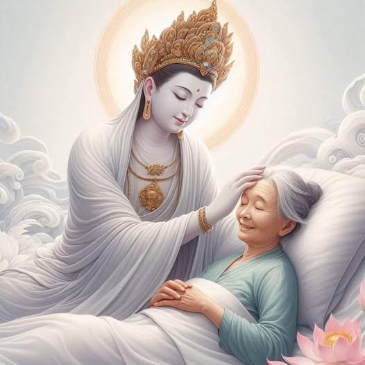 家人應告訴臨終者:「人生就是一場夢幻!請不要眷戀這個世間,唯有往生阿彌陀佛的極樂世界,才能獲得永恆的安樂與壽命。請您萬緣放下,什麼都不要想,心中不斷的唸『阿彌陀佛』不要停止!並投入阿彌陀佛強烈佛光中,跟隨阿彌陀佛往生極樂世界!」